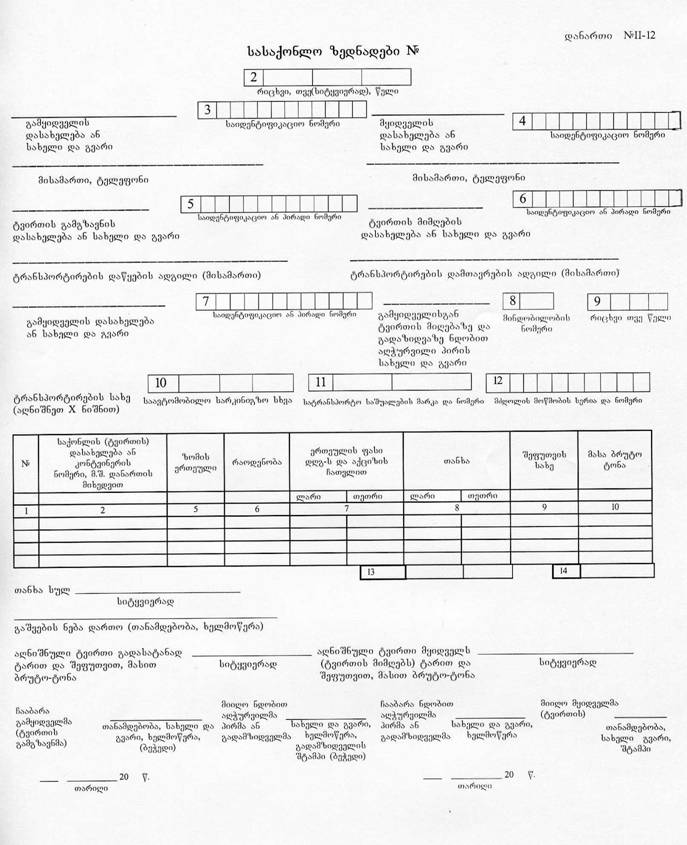 24. №II-12 დანართით გათვალისწინებული ზედნადები ივსება შემდეგი წესით: